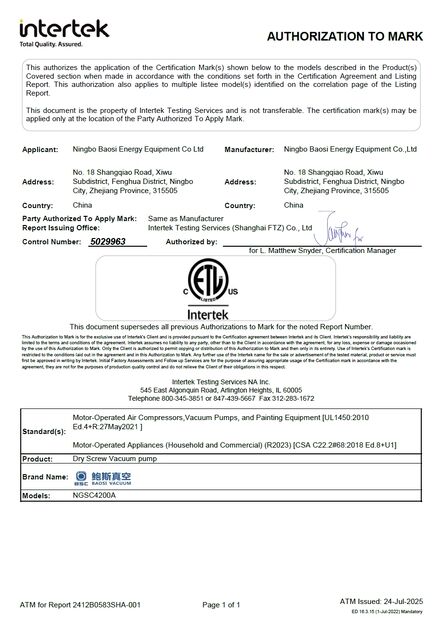 Ningbo Baosi Energy Equipment Co., Ltd. 認証